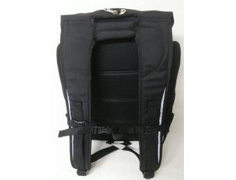 内側は収納に便利なポケット付き仕様。背中部分はメッシュでクッション性と通気性を兼ね備えている。チェストベルト付きで身体にフィット。