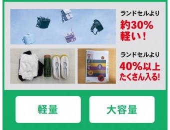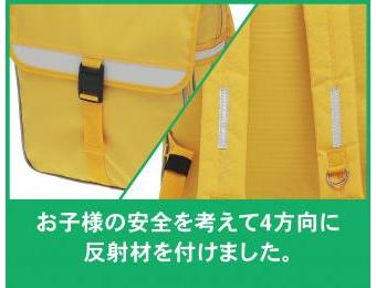 小学生用の簡易ランドセルです。ランドセルよりも軽い上に、40%以上も入る大容量です。お子様の安全性を考えて4方向に反射材が付いています。