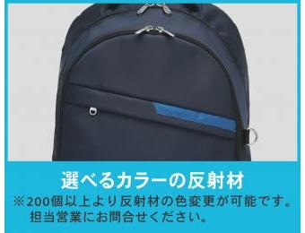 約32Lの大容量通学鞄です。コンパクトなサイズと800g台の軽量も魅力です。反射部分は見本帳からカラーが選べます。